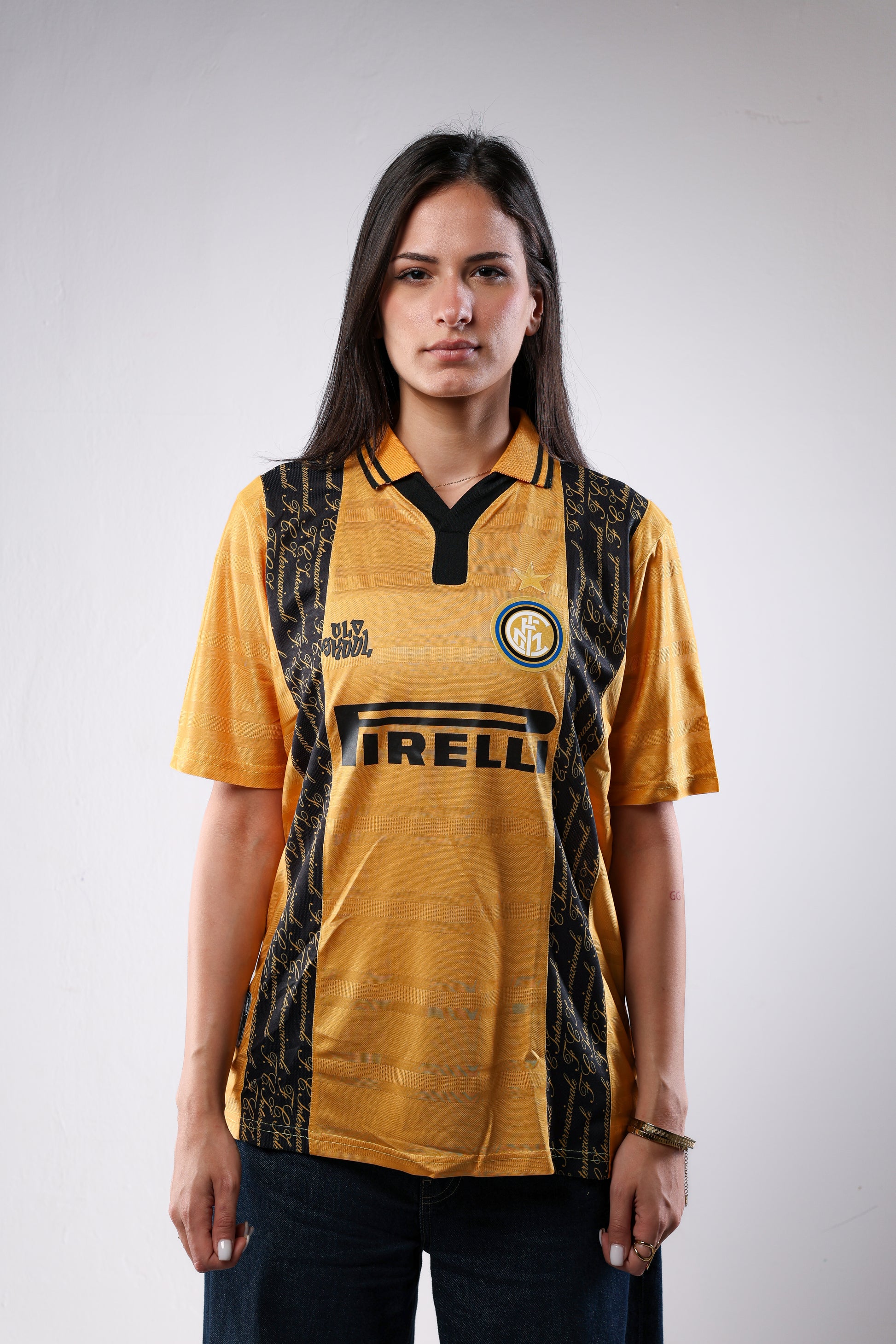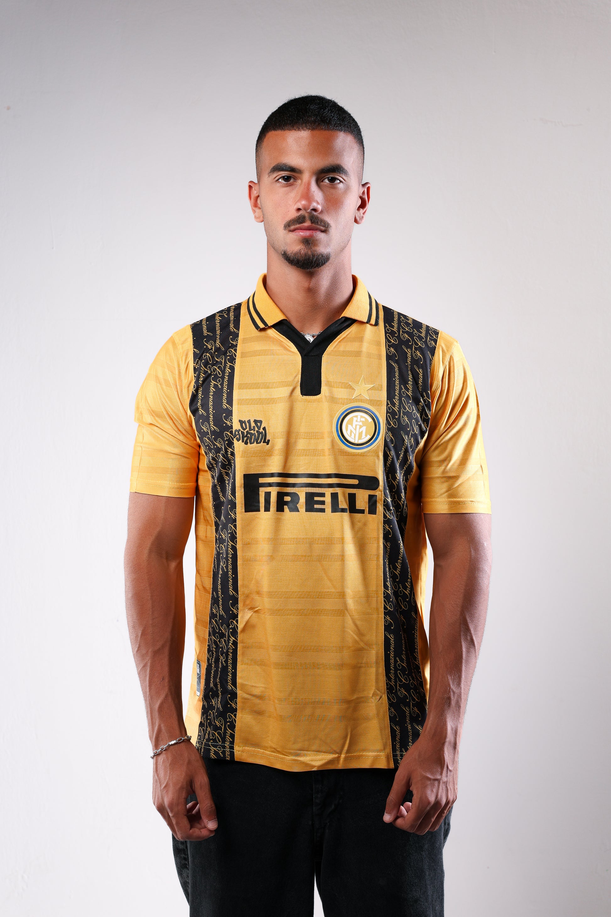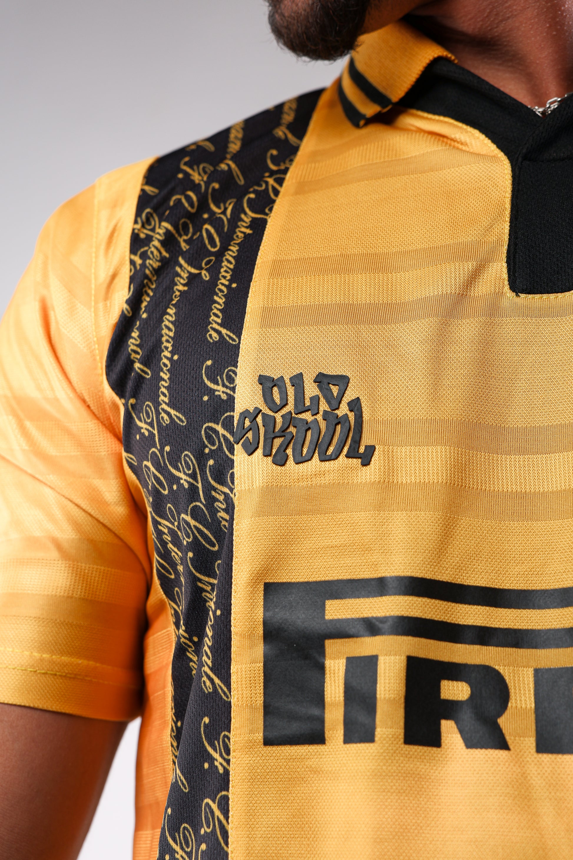 Gold-blooded and bold-hearted — Milano Heat is a tribute to Italian flair and 90s attitude. Inspired by iconic kits from the city of style and football power, this jersey fuses deep heritage with sleek street presence. The sharp collar, bold vertical script, and vintage sponsor details give it that timeless, tunnel-walk energy. Drip made for concrete runways and late-night kickabouts.