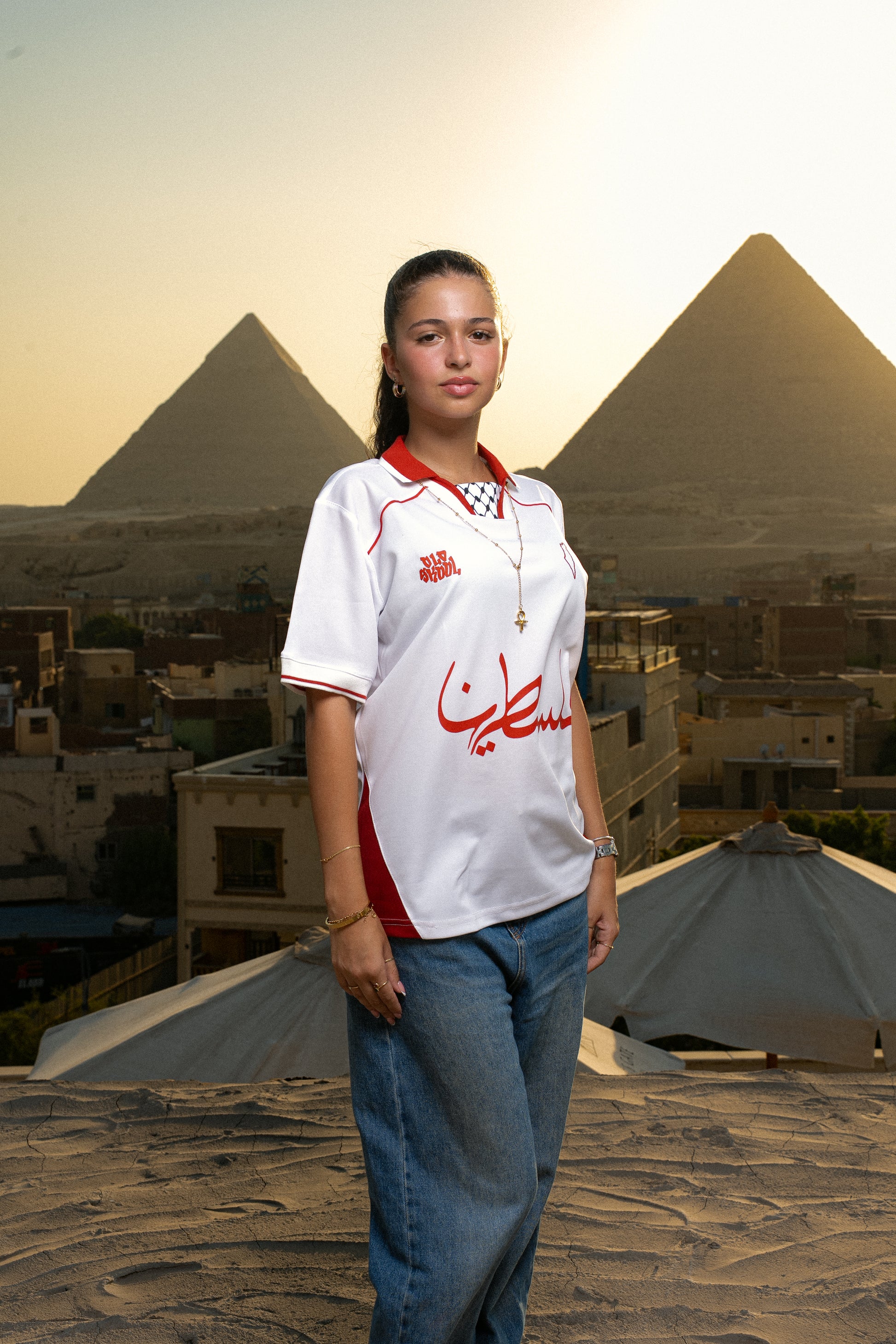 A tribute to resilience, culture, and unity. The Palestine Jersey blends Oldskool’s vintage football aesthetic with a powerful statement. Featuring bold Arabic typography, a minimalist outline of Palestine, and keffiyeh-inspired collar detailing — this jersey is more than apparel, it’s identity.
